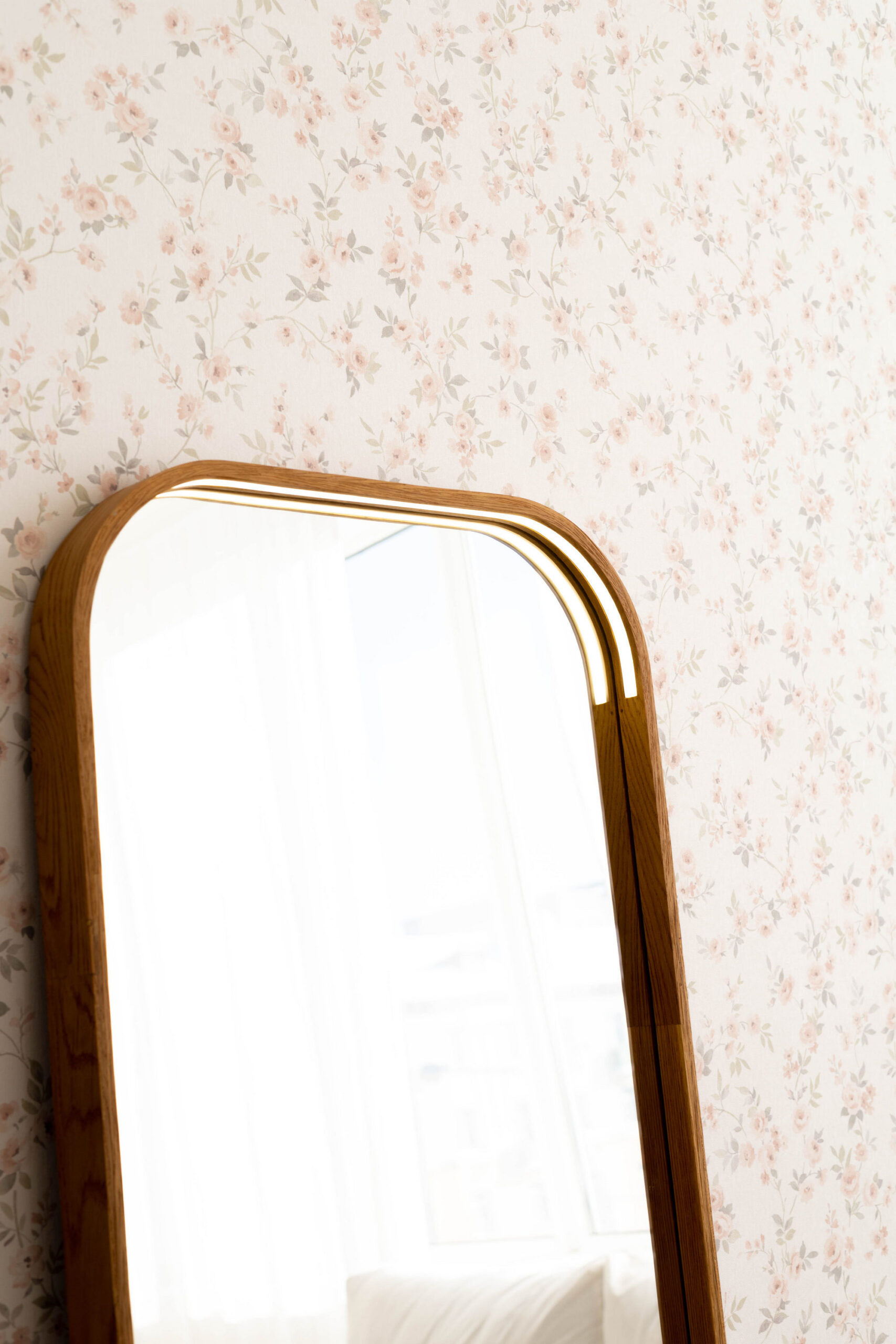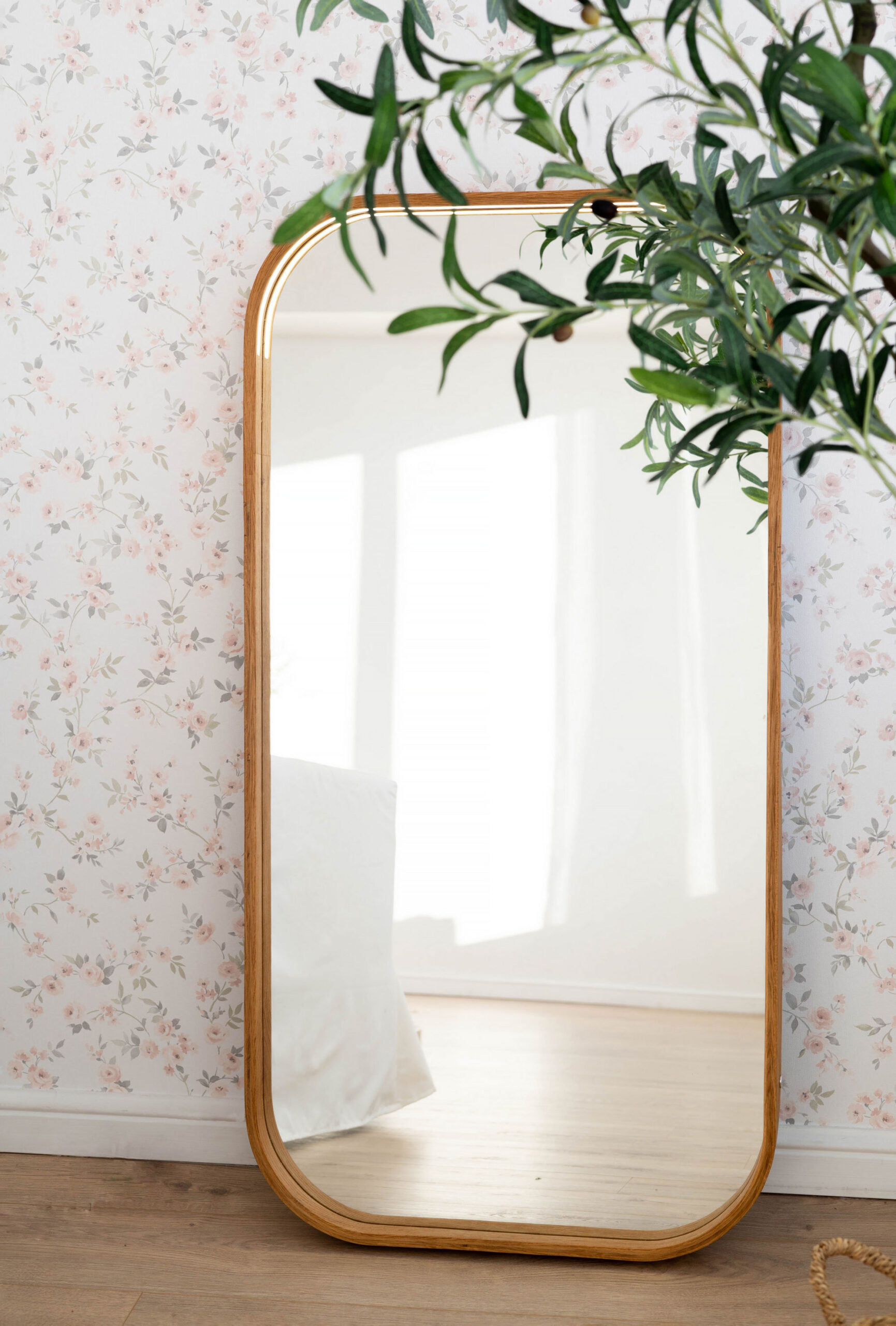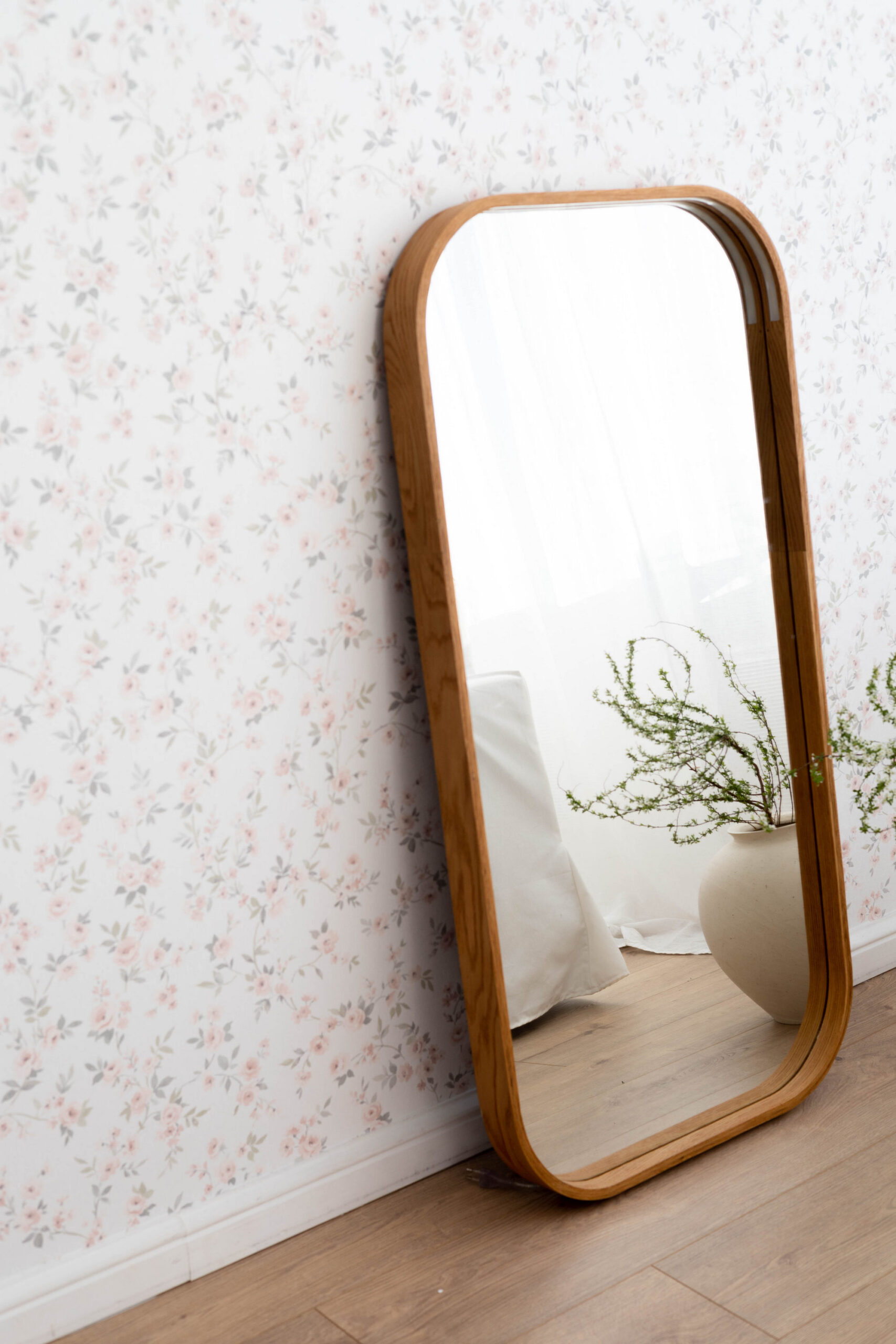 Форма зеркала визуально расширяет пространство и делает его более уютным.