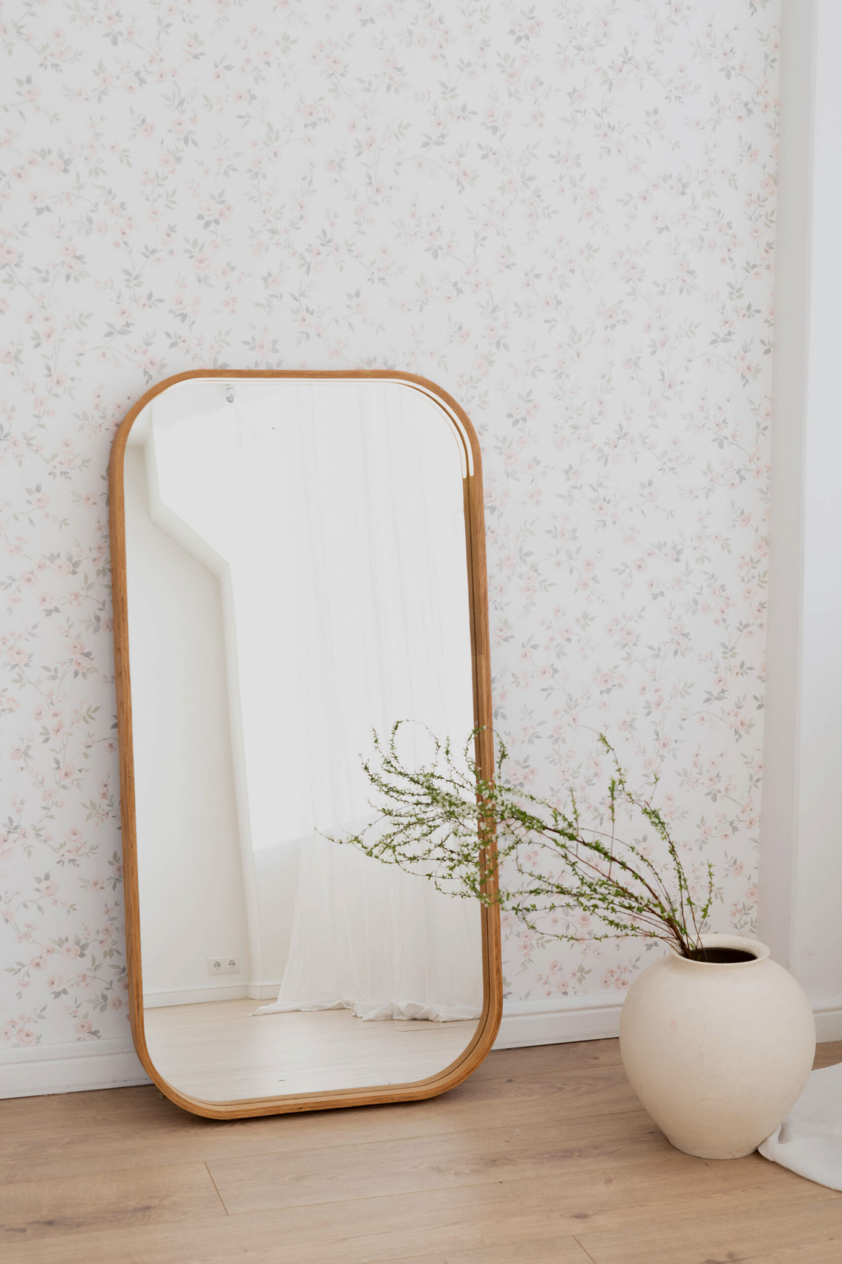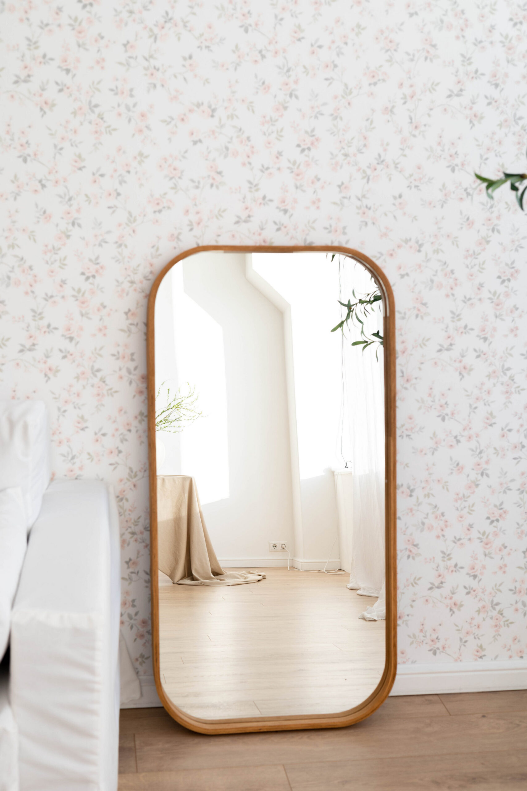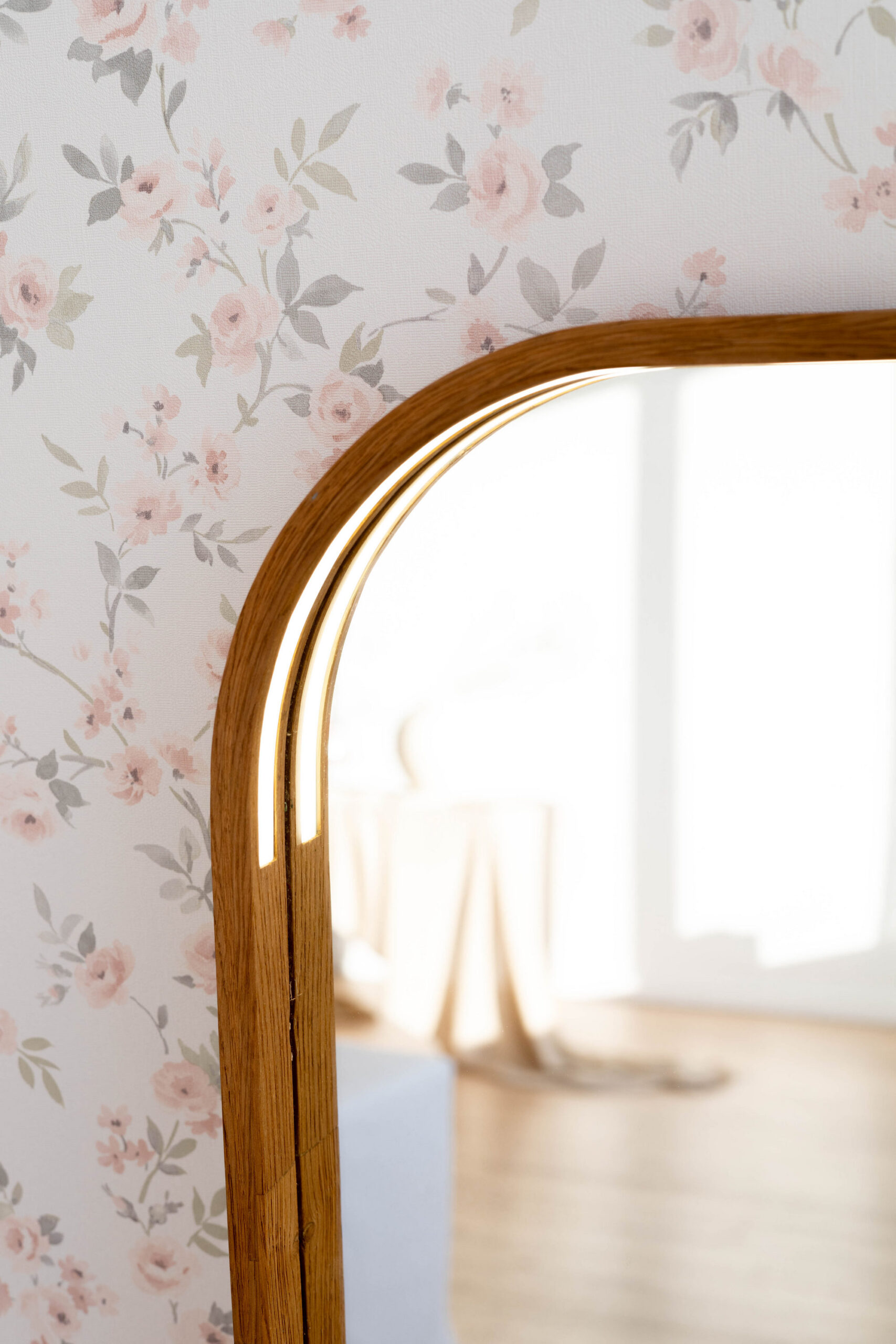 Форма зеркала визуально расширяет пространство и делает его более уютным.
